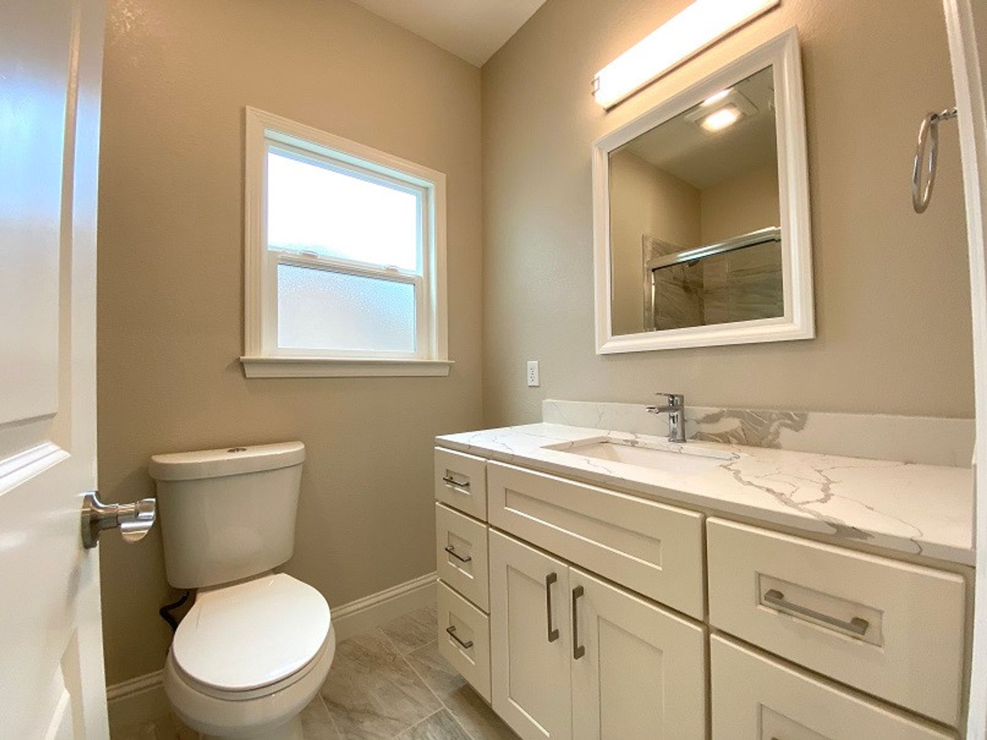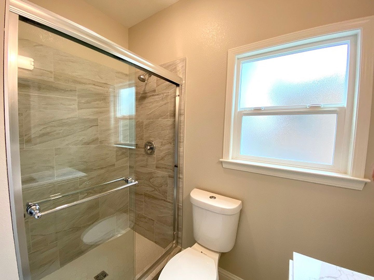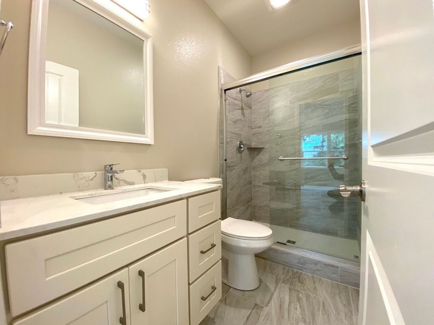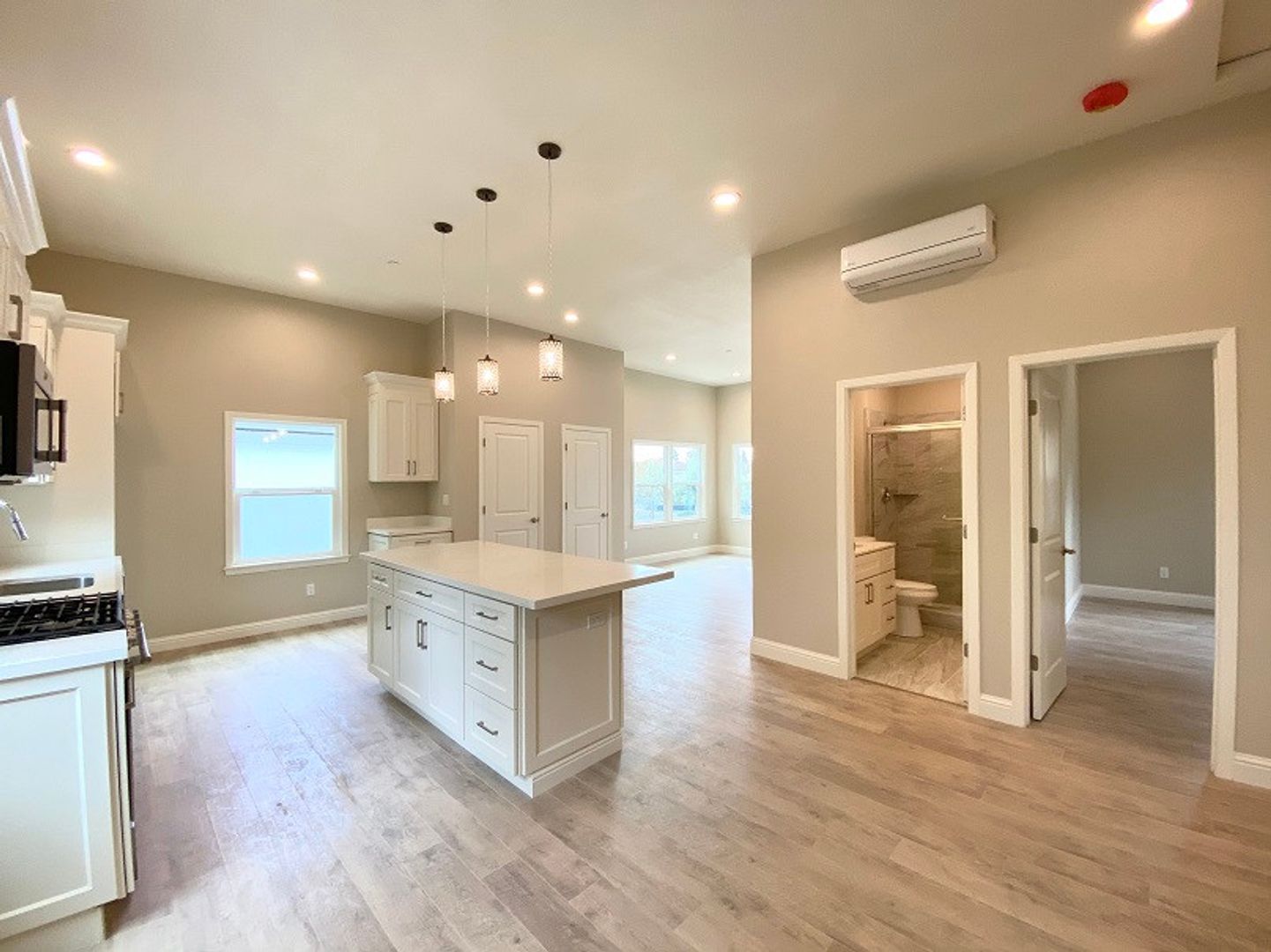 • Stone counters in kitchen and bathrooms