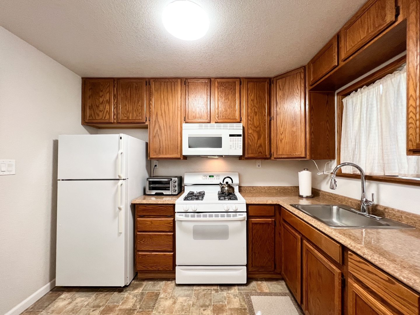 Inside, you’ll find a warm and inviting layout with beautiful wood accents, abundant natural light, and a comfortable living space perfect for relaxing or working from home. The kitchen is fully equipped with ample cabinetry, and the updated bathroom features a clean, modern finish.